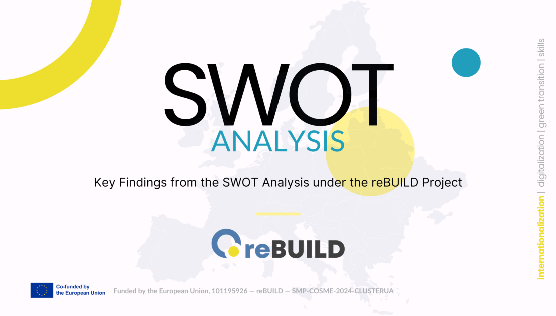 Between February and July 2025, the reBUILD team conducted a SWOT analysis based on 33 interviews with cluster representatives, SMEs, and other stakeholders from Slovenia, Spain, Romania, and Ukraine.